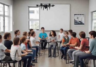 En nuestro curso de drones, los niños no solo aprenden a volar, sino que adquieren conocimientos teóricos sobre aerodinámica, control remoto, tecnología de drones y responsabilidad en el uso de estos dispositivos.